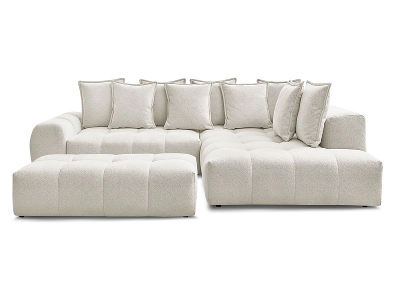 Canapé d'angle avec pouf BOBOCHIC EVEREST Tissu chiné blanc