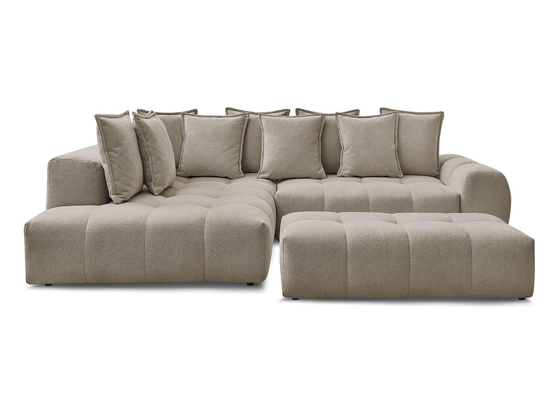 Canapé d'angle avec pouf BOBOCHIC EVEREST Tissu chiné taupe