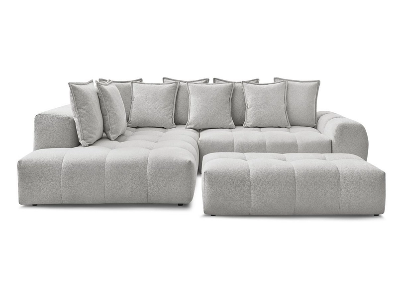 Canapé d'angle avec pouf BOBOCHIC EVEREST Tissu chiné gris clair