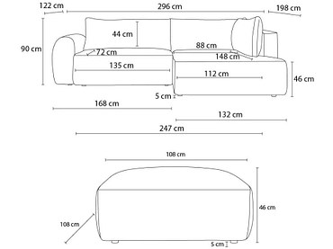 - Le canapé dispose d'une grande et longue méridienne, cette dernière permet de vous coucher ou de vous allonger pendant de longues heures