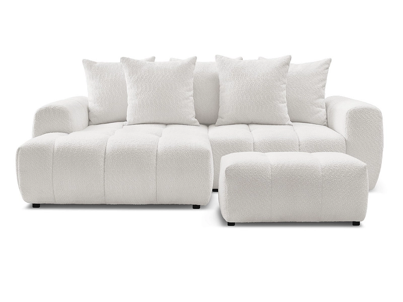 Canapé d'angle avec pouf BOBOCHIC ROXELANE Tissu bouclette blanc