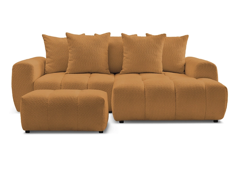 Canapé d'angle avec pouf BOBOCHIC ROXELANE Tissu bouclette jaune