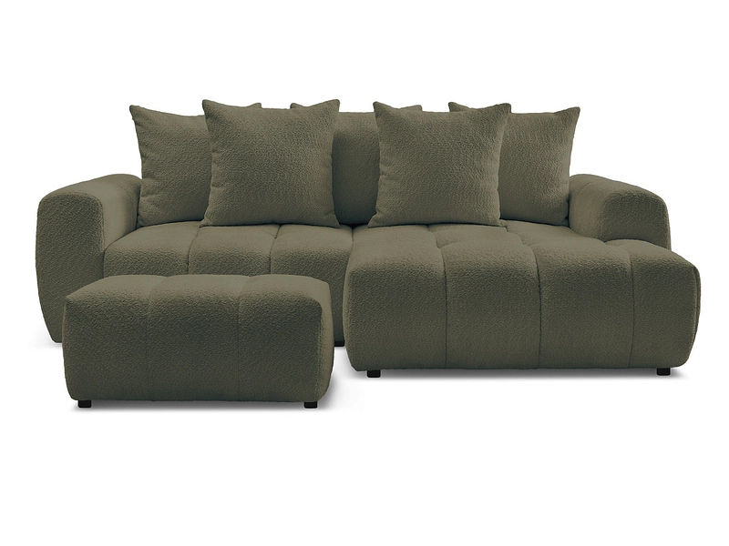 Canapé d'angle avec pouf BOBOCHIC ROXELANE Tissu bouclette vert