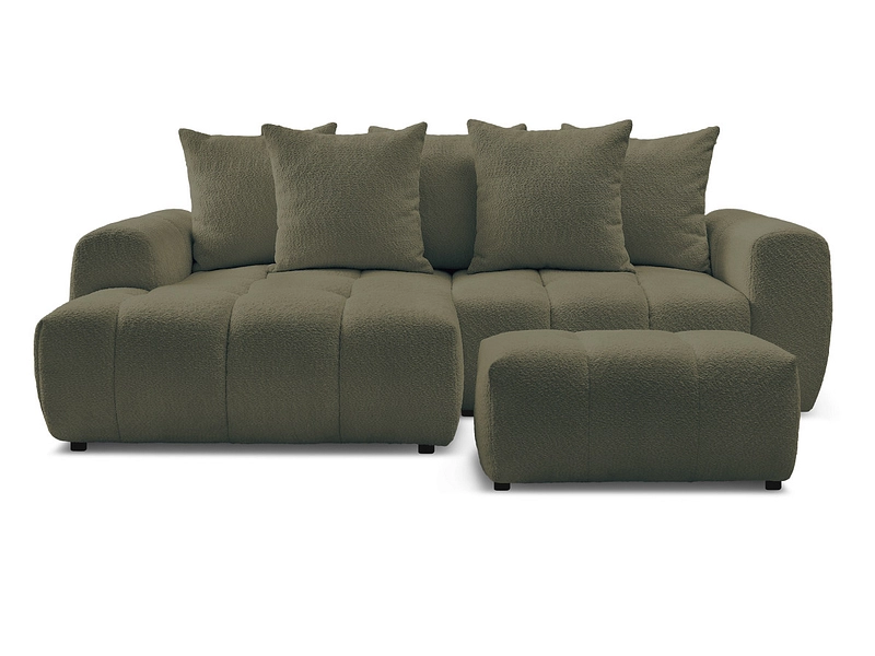 Canapé d'angle avec pouf BOBOCHIC ROXELANE Tissu bouclette vert
