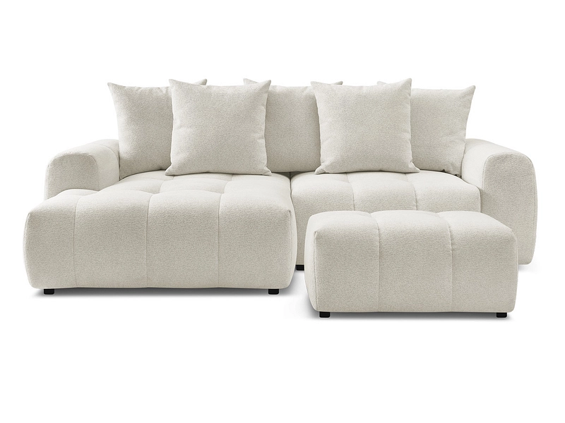 Canapé d'angle avec pouf BOBOCHIC ROXELANE Tissu chiné blanc