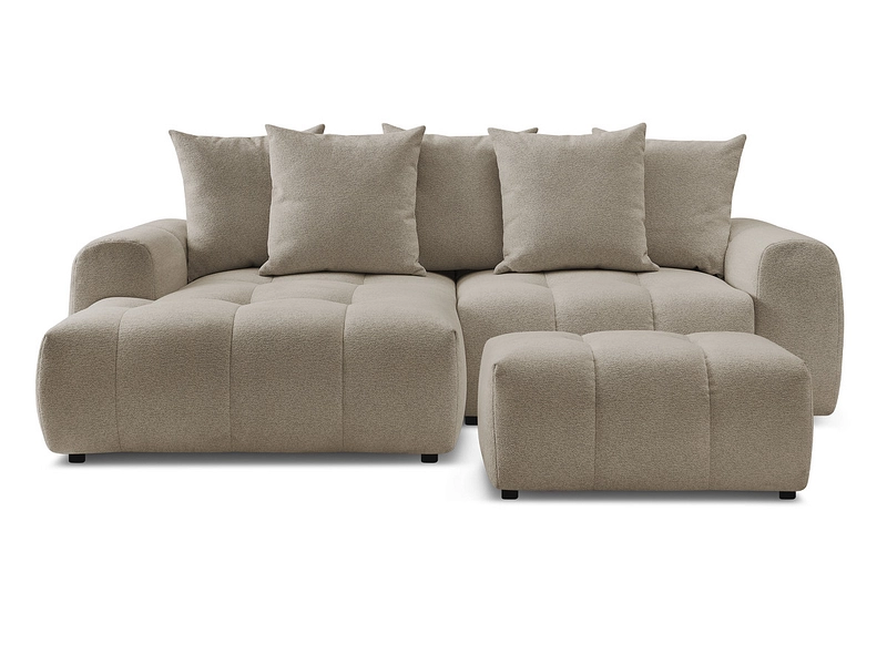 Canapé d'angle avec pouf BOBOCHIC ROXELANE Tissu chiné taupe