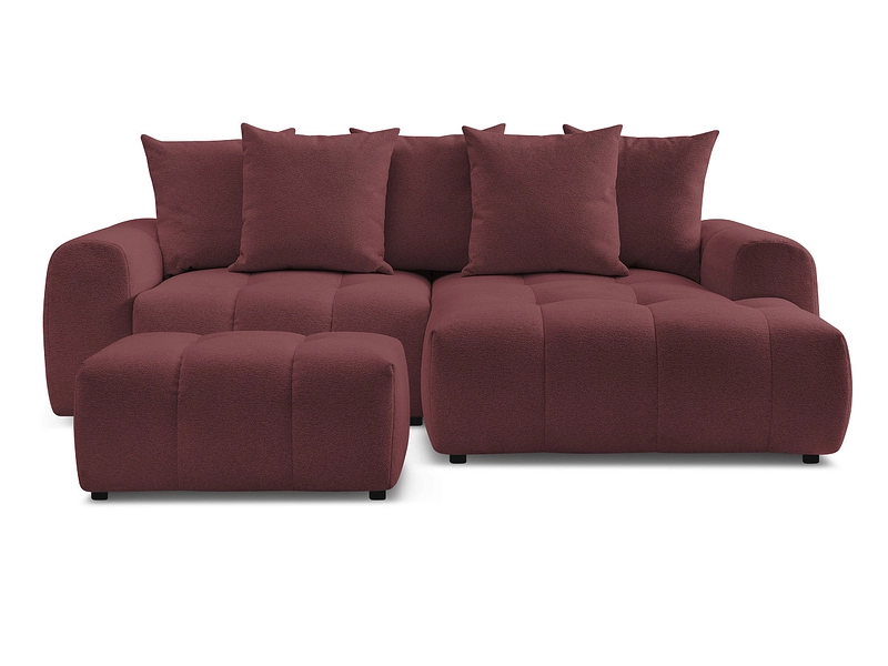 Canapé d'angle avec pouf BOBOCHIC ROXELANE Tissu chiné rouge
