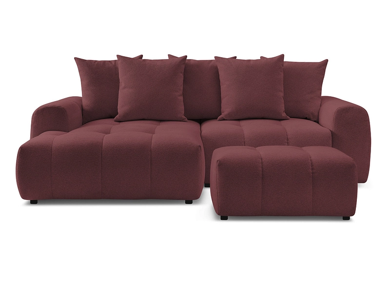 Canapé d'angle avec pouf BOBOCHIC ROXELANE Tissu chiné rouge