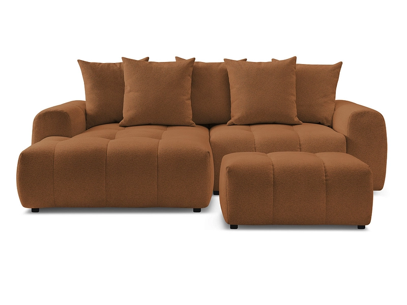 Canapé d'angle avec pouf BOBOCHIC ROXELANE Tissu chiné orange