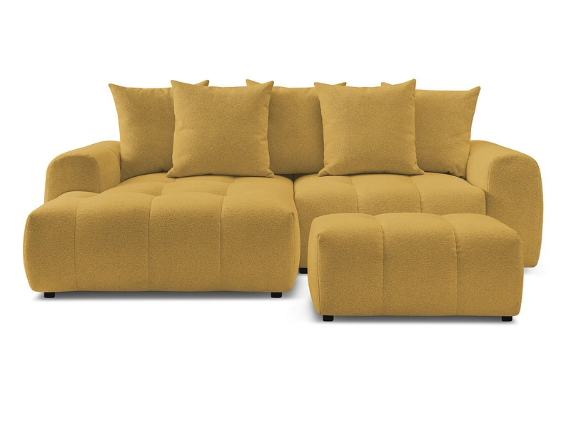 Canapé d'angle avec pouf BOBOCHIC ROXELANE Tissu chiné jaune