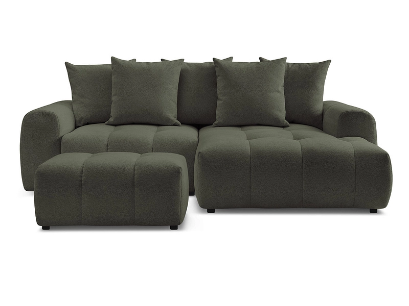 Canapé d'angle avec pouf BOBOCHIC ROXELANE Tissu chiné vert