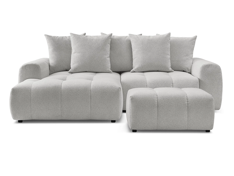 Canapé d'angle avec pouf BOBOCHIC ROXELANE Tissu chiné gris clair