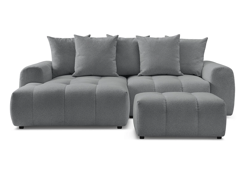 Canapé d'angle avec pouf BOBOCHIC ROXELANE Tissu chiné gris foncé