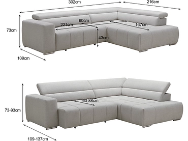 • Hauteur : 62 cm , Longeur : 133 cm , Largeur : 214 cm , Poids : 85.3 kg