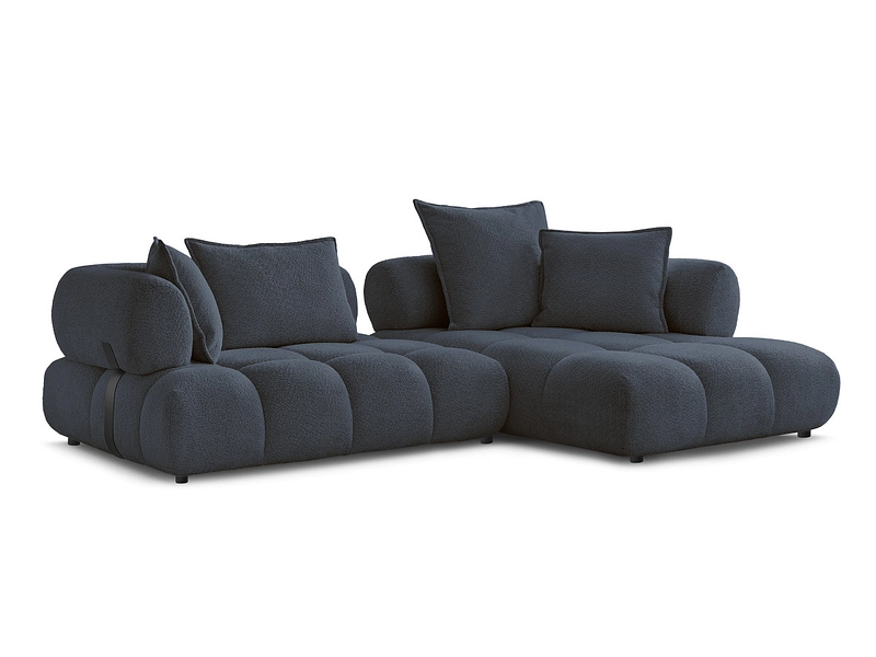 Canapé d'angle BOBOCHIC ALYA Tissu bouclette bleu foncé