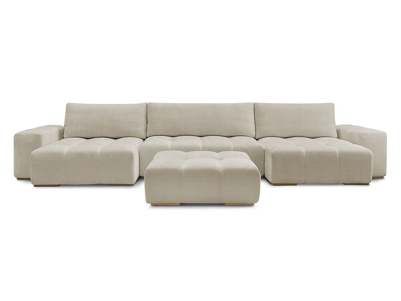 Canapé d'angle panoramique avec pouf BOBOCHIC ANAKIN Tissu texturé beige