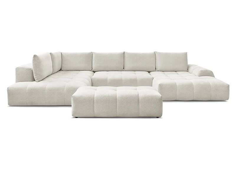 Canapé d'angle panoramique avec pouf BOBOCHIC EVEREST Tissu chiné blanc