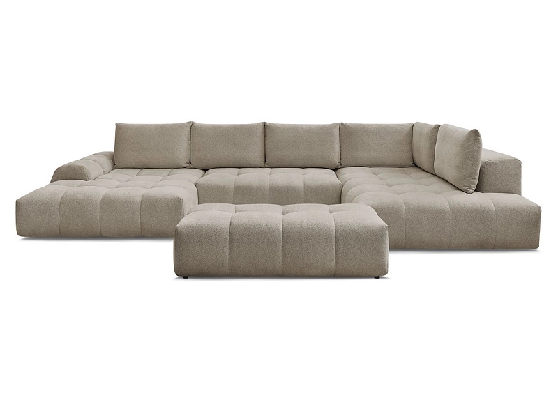 Canapé d'angle panoramique avec pouf BOBOCHIC EVEREST Tissu chiné taupe