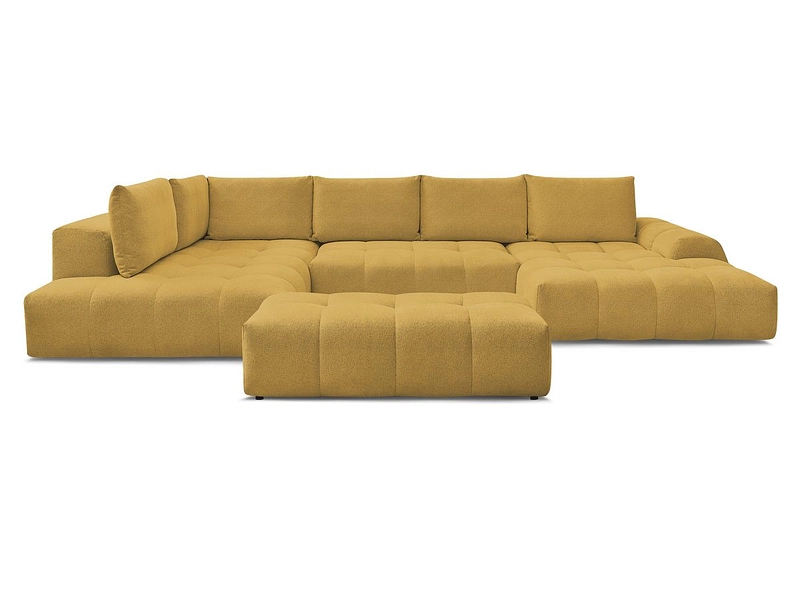 Canapé d'angle panoramique avec pouf BOBOCHIC EVEREST Tissu chiné jaune