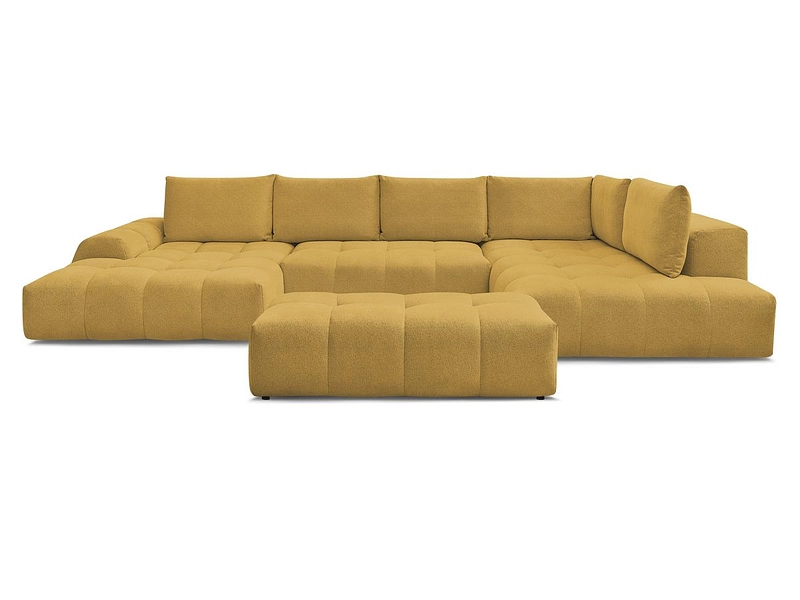 Canapé d'angle panoramique avec pouf BOBOCHIC EVEREST Tissu chiné jaune