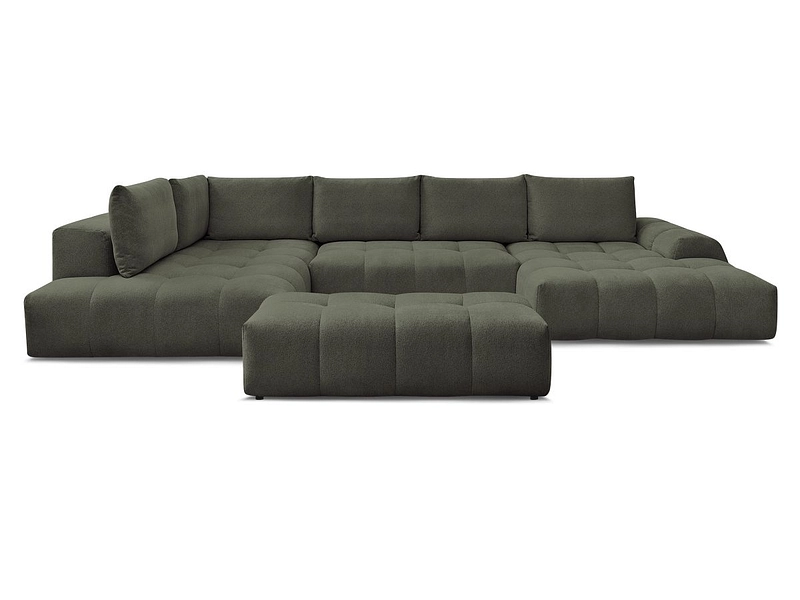 Canapé d'angle panoramique avec pouf BOBOCHIC EVEREST Tissu chiné vert
