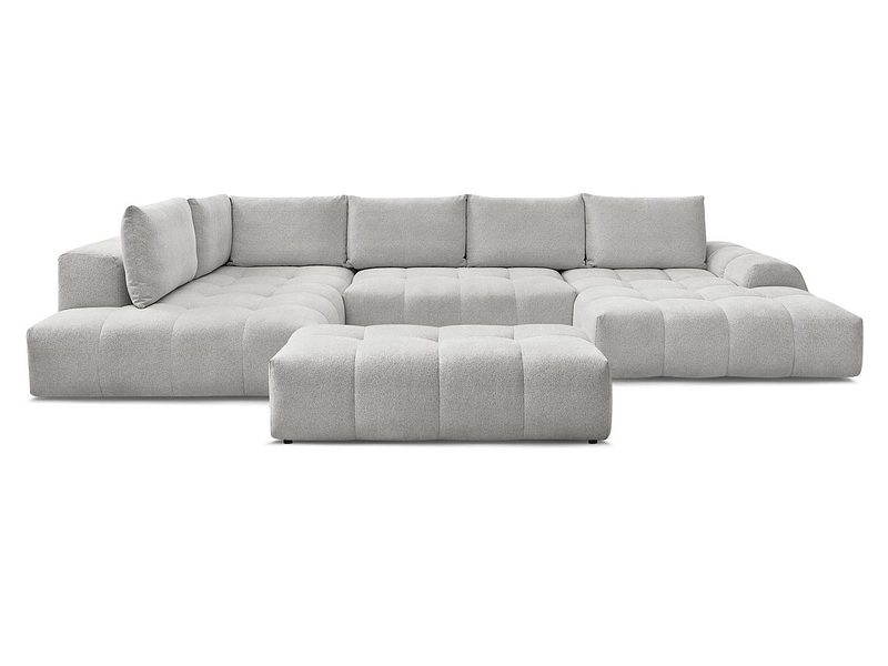 Canapé d'angle panoramique avec pouf BOBOCHIC EVEREST Tissu chiné gris clair