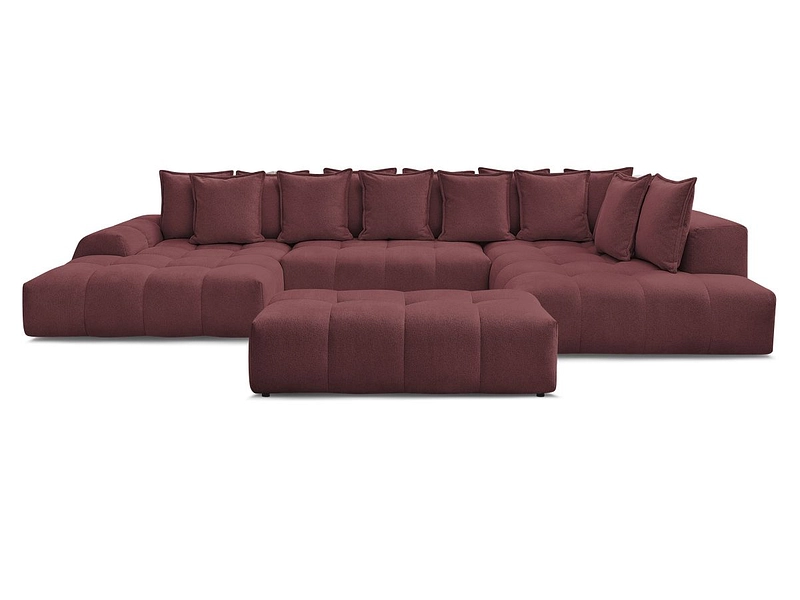 Canapé d'angle panoramique avec pouf BOBOCHIC EVEREST Tissu chiné rouge