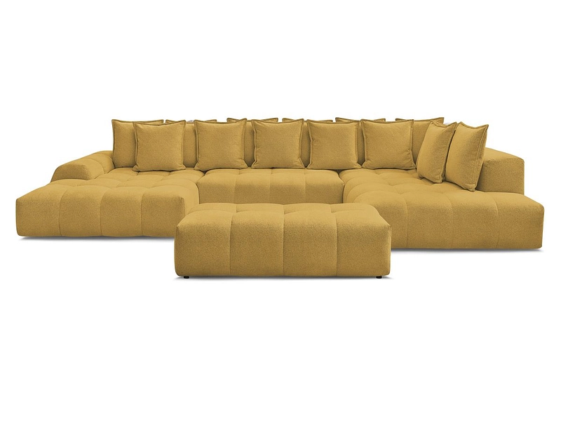 Canapé d'angle panoramique avec pouf BOBOCHIC EVEREST Tissu chiné jaune