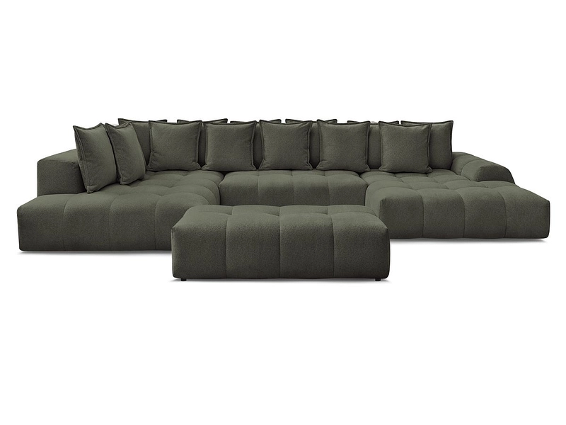 Canapé d'angle panoramique avec pouf BOBOCHIC EVEREST Tissu chiné vert
