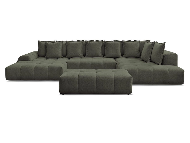 Canapé d'angle panoramique avec pouf BOBOCHIC EVEREST Tissu chiné vert