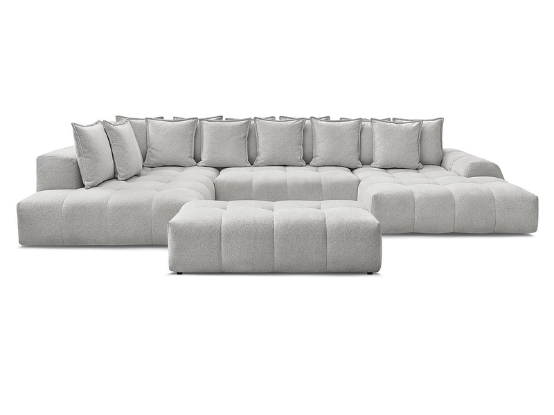 Canapé d'angle panoramique avec pouf BOBOCHIC EVEREST Tissu chiné gris clair