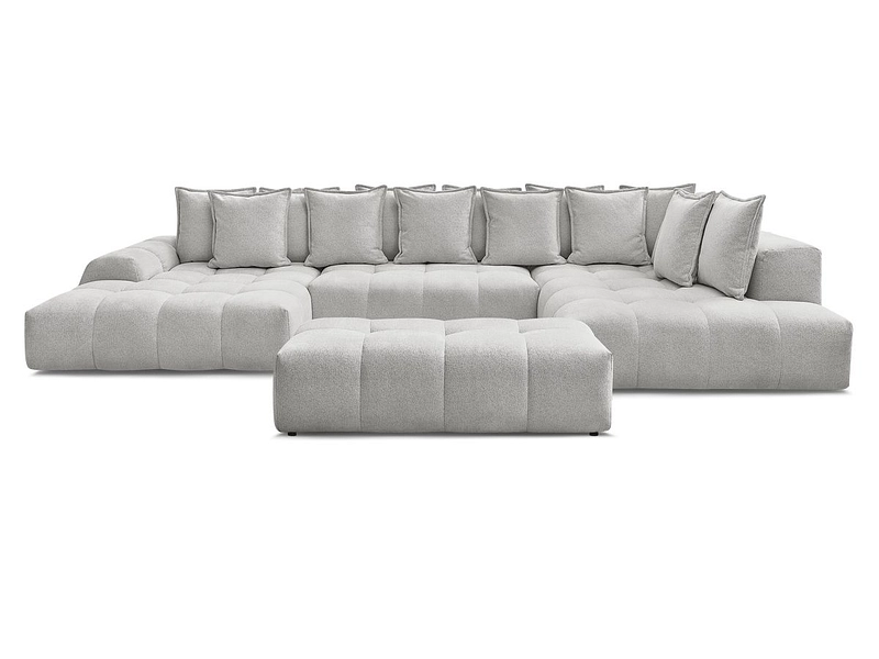 Canapé d'angle panoramique avec pouf BOBOCHIC EVEREST Tissu chiné gris clair