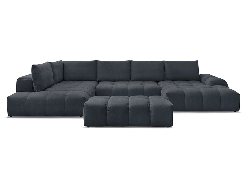 Canapé d'angle panoramique avec pouf BOBOCHIC EVEREST Tissu texturé bleu foncé