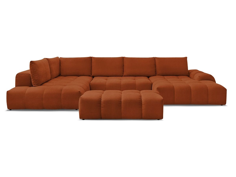 Canapé d'angle panoramique avec pouf BOBOCHIC EVEREST Tissu texturé orange