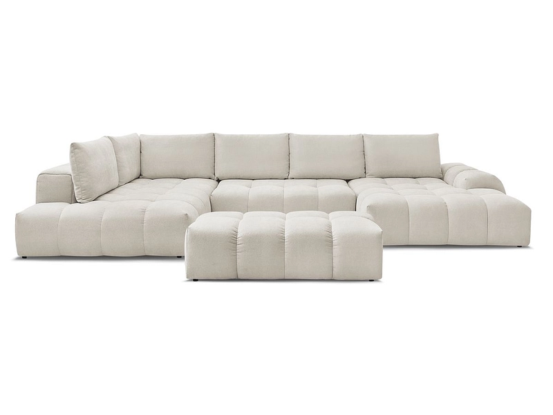 Canapé d'angle panoramique avec pouf BOBOCHIC EVEREST Tissu texturé beige
