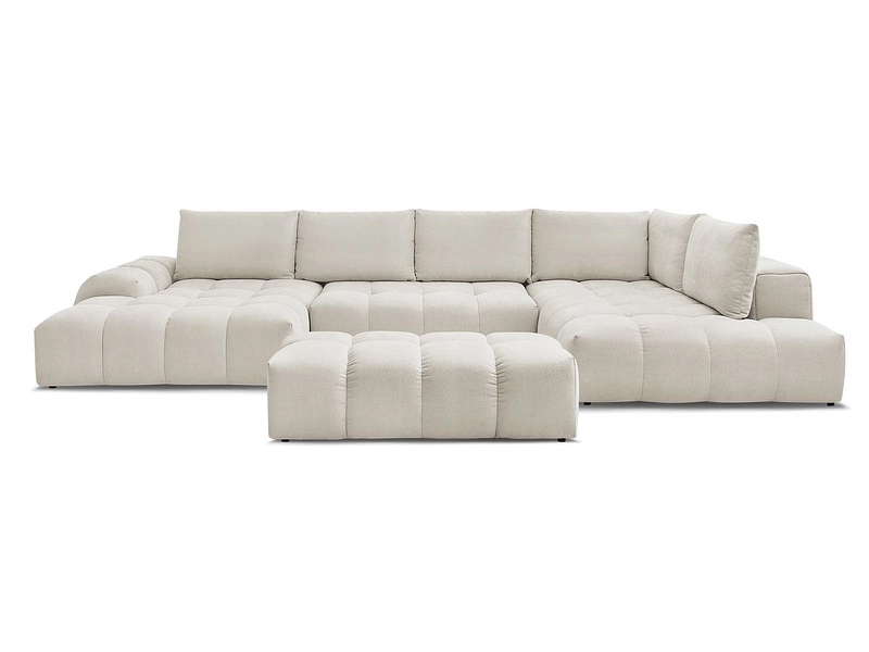 Canapé d'angle panoramique avec pouf BOBOCHIC EVEREST Tissu texturé beige