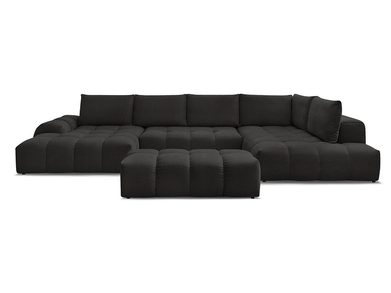 Canapé d'angle panoramique avec pouf BOBOCHIC EVEREST Tissu texturé noir