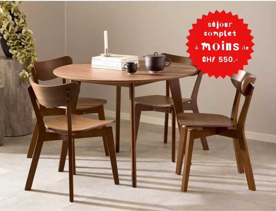 Pour choisir ses nouvelles chaises, que ce soit à la maison ou au bureau, il importe de tenir compte du design et du style de ce meuble essentiel. Les chaises ergonomiques modernes offrent une esthétique élégante et garantissent au même titre un confort optimal pour votre dos. Les chaises de salle à manger en bois ou en métal peuvent être personnalisées pour correspondre à votre décor. Avec Conforama Suisse, vous avez l’embarras du choix à prix abordable ! Vous trouverez donc certainement votre bonheur pour choisir vos prochaines chaises.
