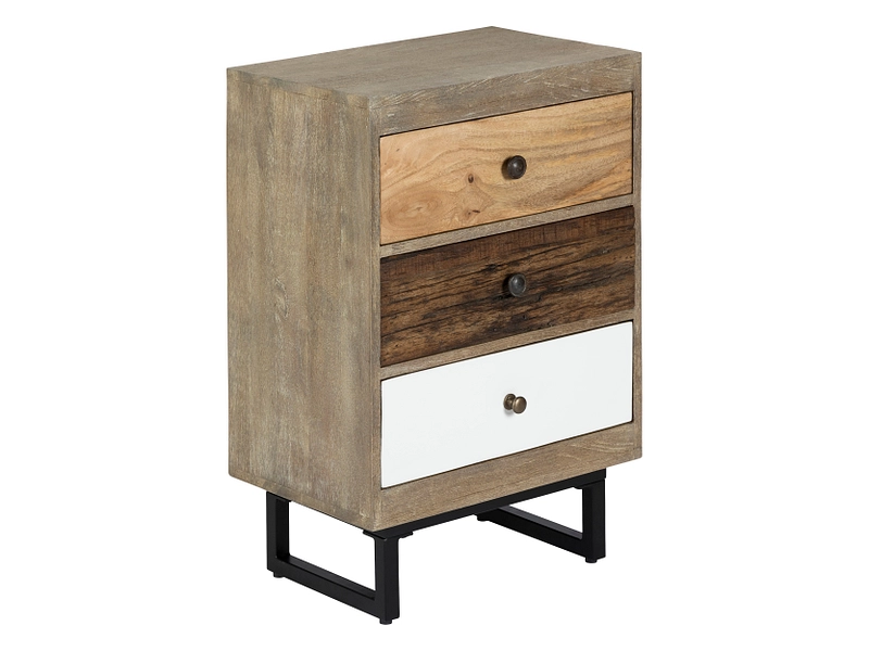 Chevet ATMOSPHERA KOVAL 3 tiroirs 49x33x74cm gris bois massif