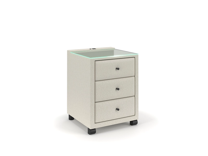 Chevet ELYSIA 3 tiroirs 45.5x48x68cm beige tissu / plastique