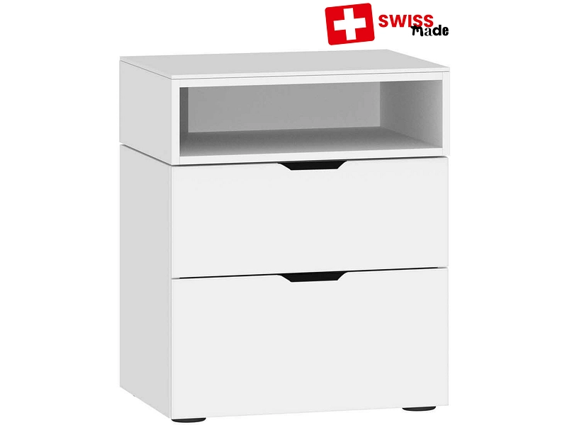 Chevet EVOLUTION 2 tiroirs 43x45x55cm blanc verre