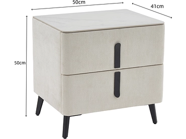 Chevet VELVET 2 tiroirs 50x40x49cm beige tissu
