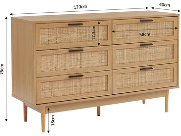 Commode AMANA 6 tiroirs 39.5x120x75cm bois chêne