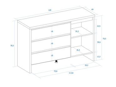 Commode MARCKERIC DAVIS 1 porte 3 tiroirs 40x120x78.5cm chêne mélamine