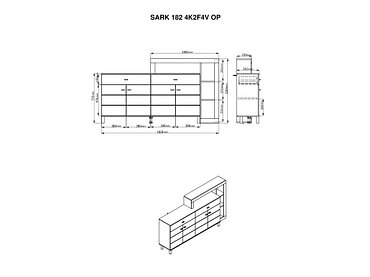 Commode SARK 4 portes 2 tiroirs 35x183x100.5cm chêne artisan mélamine