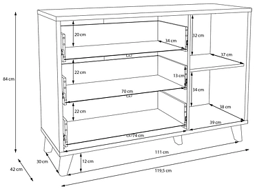 Commode GLENKEEN 1 porte 3 tiroirs 41.5x119.5x85cm brun foncé décor / rotin