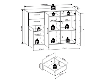Commode MULTI 3 portes 2 tiroirs 40x120x83cm chêne artisan