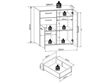 Commode MULTI 2 portes 2 tiroirs 52x80x83cm béton