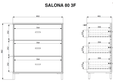 Commode SALONA 3 tiroirs 40x80x90cm cappuccino chêne