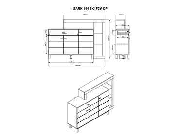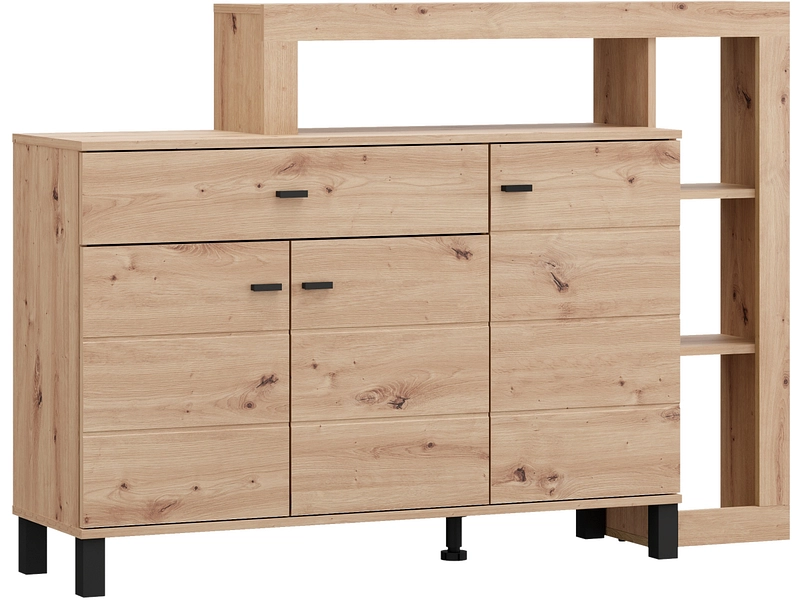 Commode SARK 3 portes 1 tiroir 35x144.5x100.5cm chêne artisan mélamine